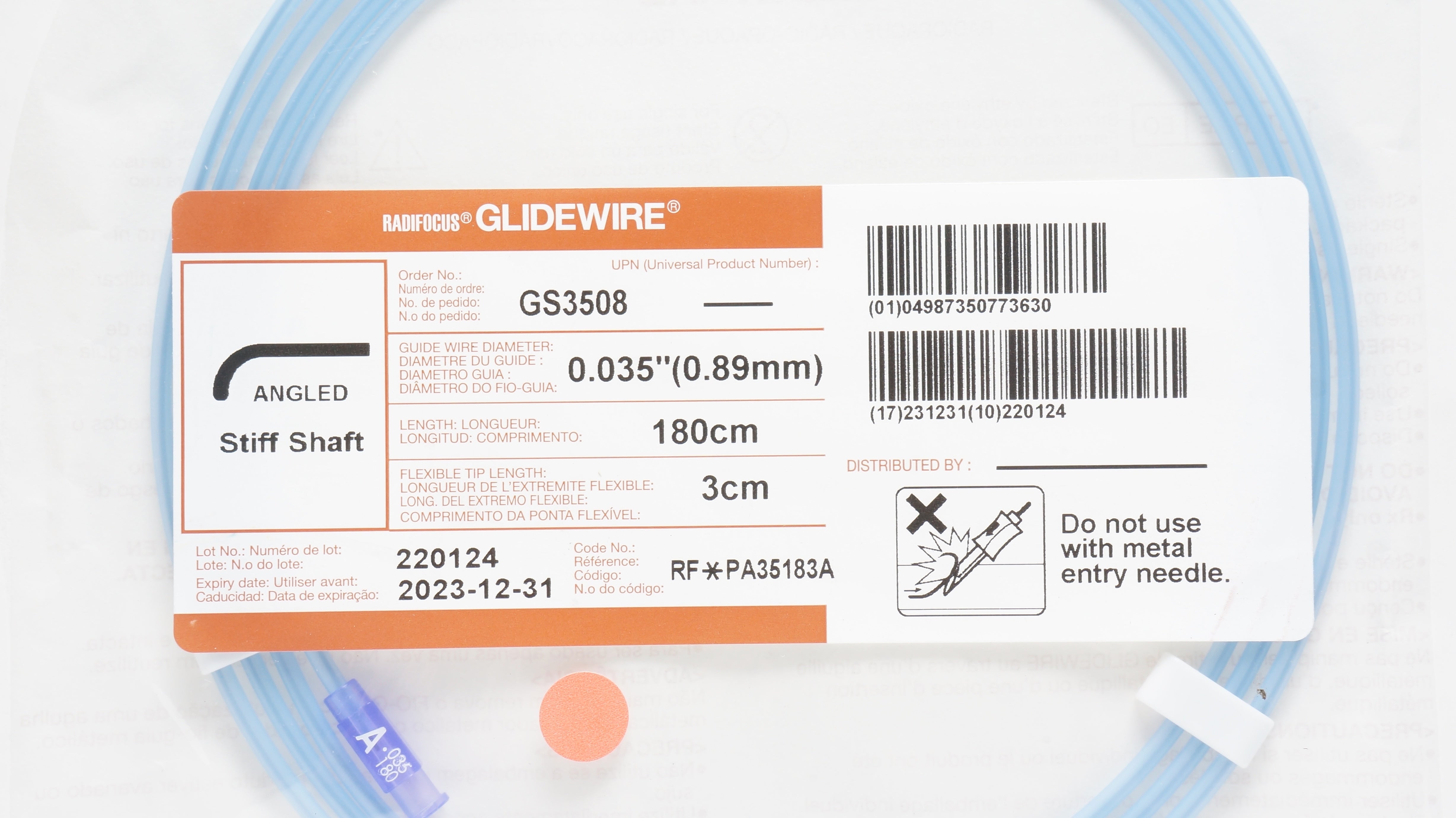 - Terumo PA35183A Radifocus Glidewire Stiff Shaft Angled 0.035inch x 180 x 3cm (x)
