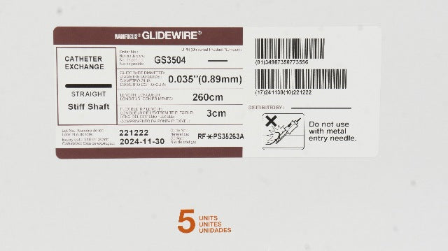 - Terumo PS35263A Glidewire Cath. Exchange 0.035inch x 260cm x 3cm - Box of 5