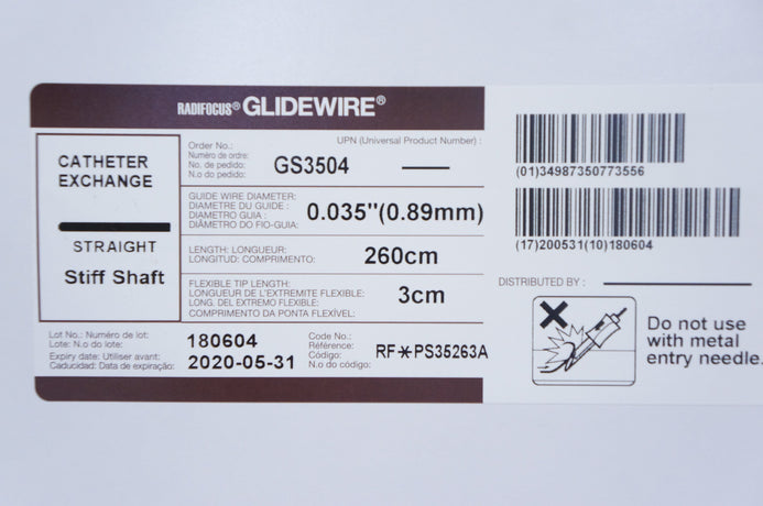 - Terumo PS35263A Glidewire Radiopaque Stiff Type 0.89mm x 260 x 3cm (x) - Box of 5