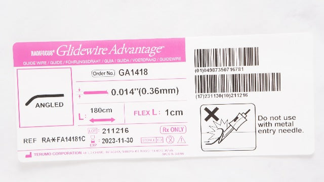 - Terumo RA*FA14181C Radifocus Advantage Guidewire 0.014inch x 180cm x 1cm (x)
