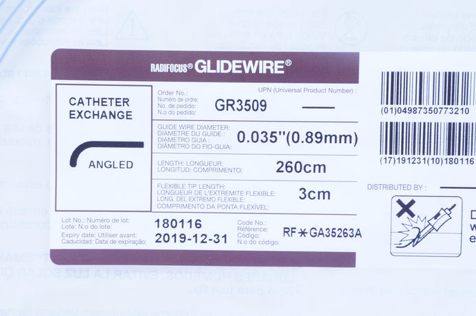 Terumo RF*GA35263A RadiFocus Glidewire Angled Catheter Exchange 0.035in.x 260cm x 3cm