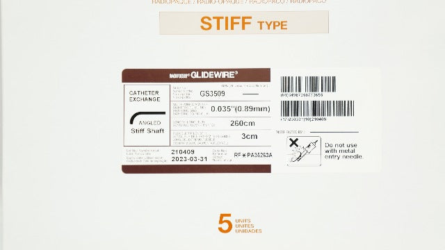 - Terumo RF*PA35263A Glidewire Cath. Exchange Angled Stiff .035in x 260cm (x) - Box of 3