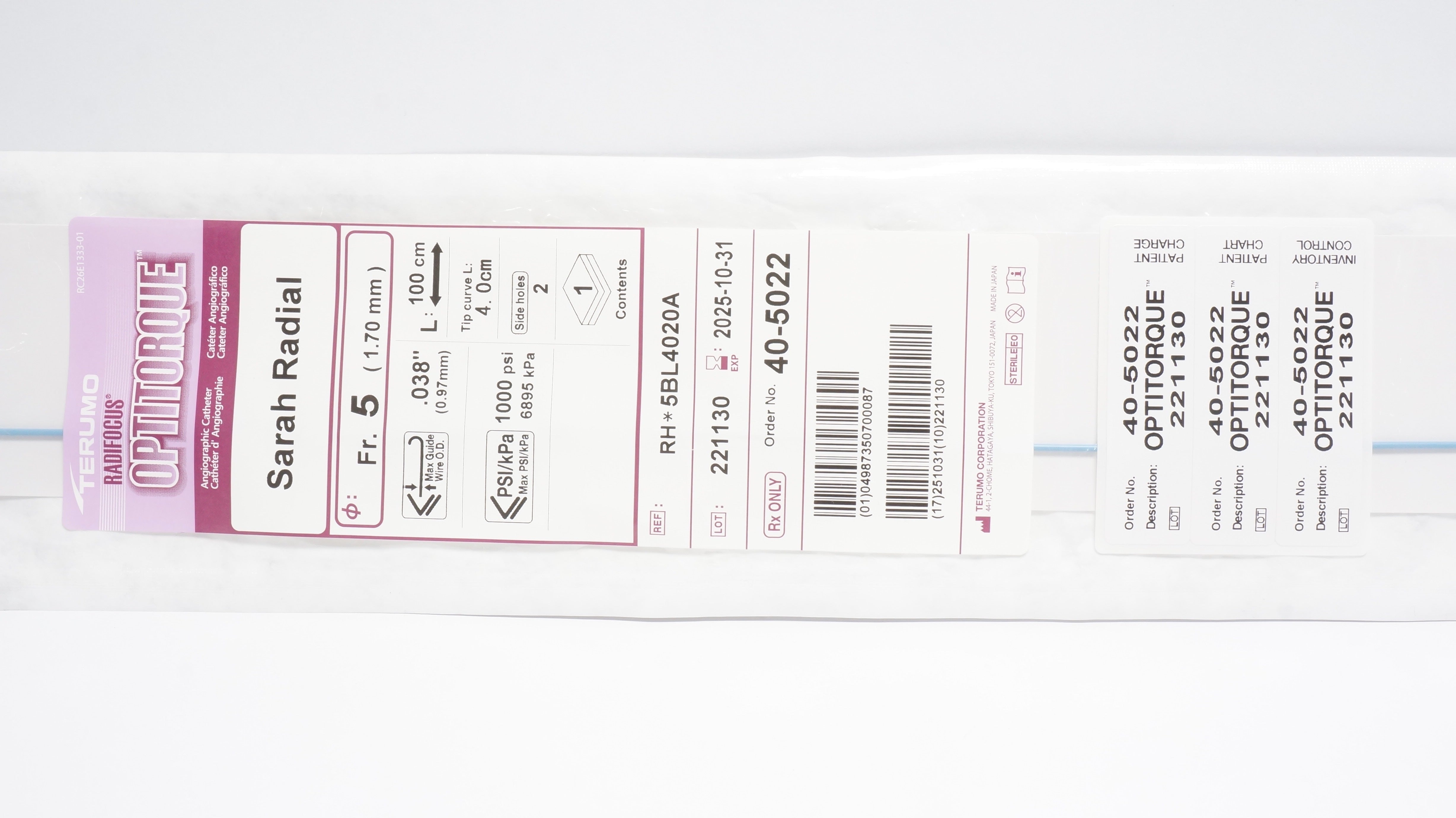 - Terumo RH*5BL4020A Radiofocus Optitorque Angiographic Cath., Sarah Radial 5Fr(x)