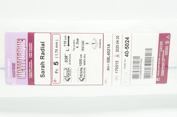 Terumo RH*5BL4021A RadiFocus Optitorque Sarah Radial Angiographic Catheter 5Fr x 110cm