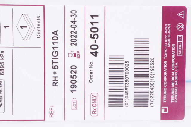 Terumo RH*5TIG110A Radiofocus Optitorque Angiograthic Catheter Radial TIG 4.0 5Fr. x 0.038inch x 100cm