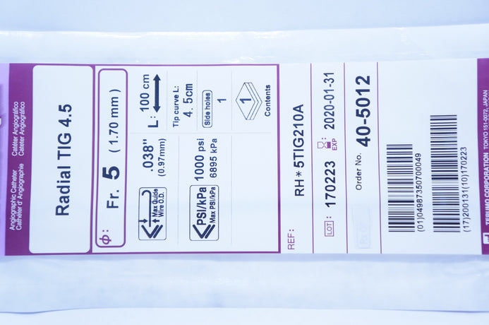 Terumo RH*5TIG210A Radifocus Optitorque Angiographic Catheter 5Fr x 100cm x .038inch
