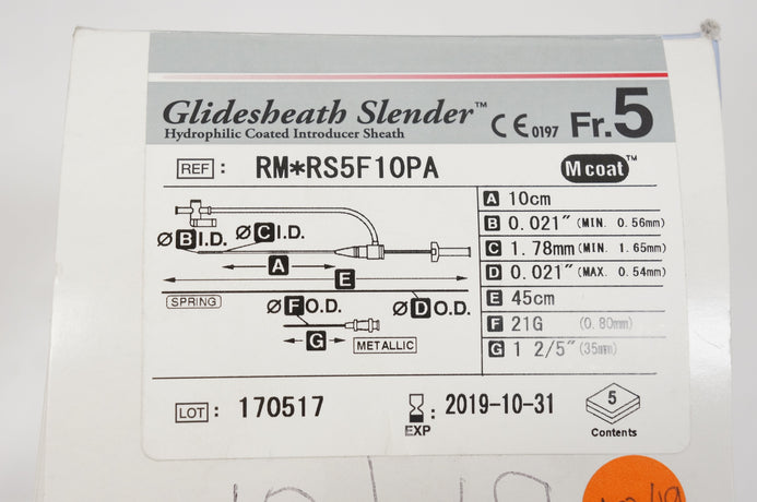 - Terumo RS5F10PA Glide Slender Hydrophilic Introducer Sheath 5Fr. (x) - Box of 5