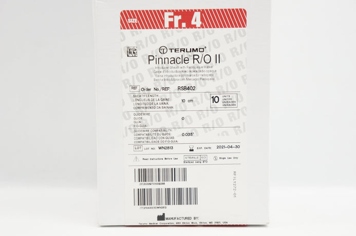 - Terumo RSB402 Pinnacle R/O II Introducer Sheath 4Frx10cmx0.035inch- Box of 10(x)