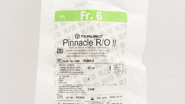 - Terumo RSB603 Pinnacle R/O II Introducer Sheath 6Fr. x 25cm x 0.038inch (x)