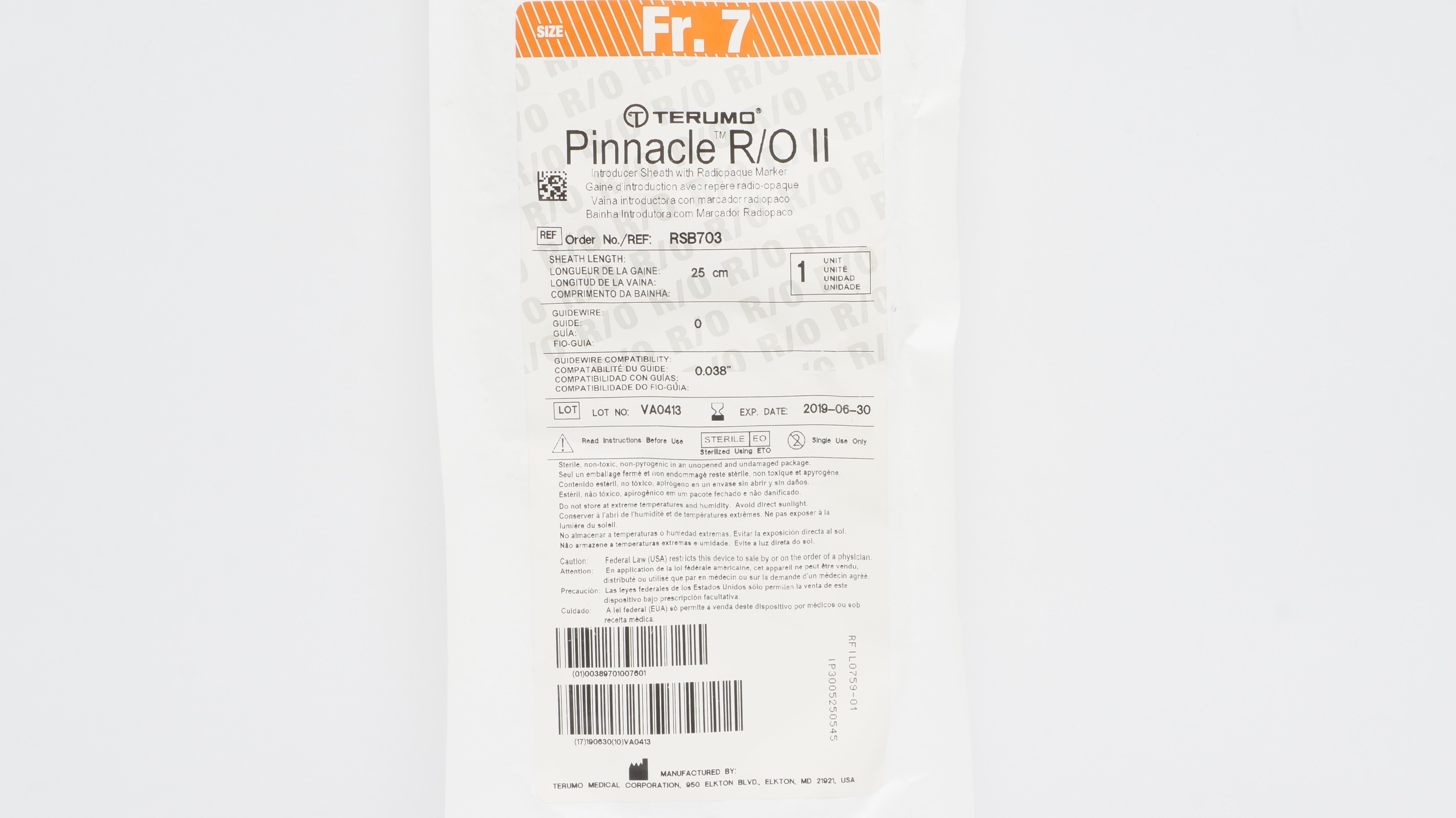 - Terumo RSB703 Pinnacle R/O II Introducer Sheath 7Fr x 0.038inch x 25cm (x)