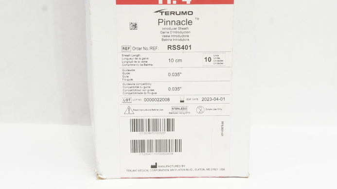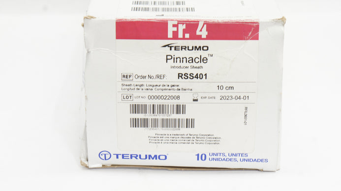 - Terumo RSS401 Pinnacle Introducer Sheath 4Fr 10cm x 0.035inch (x) - Box of 9