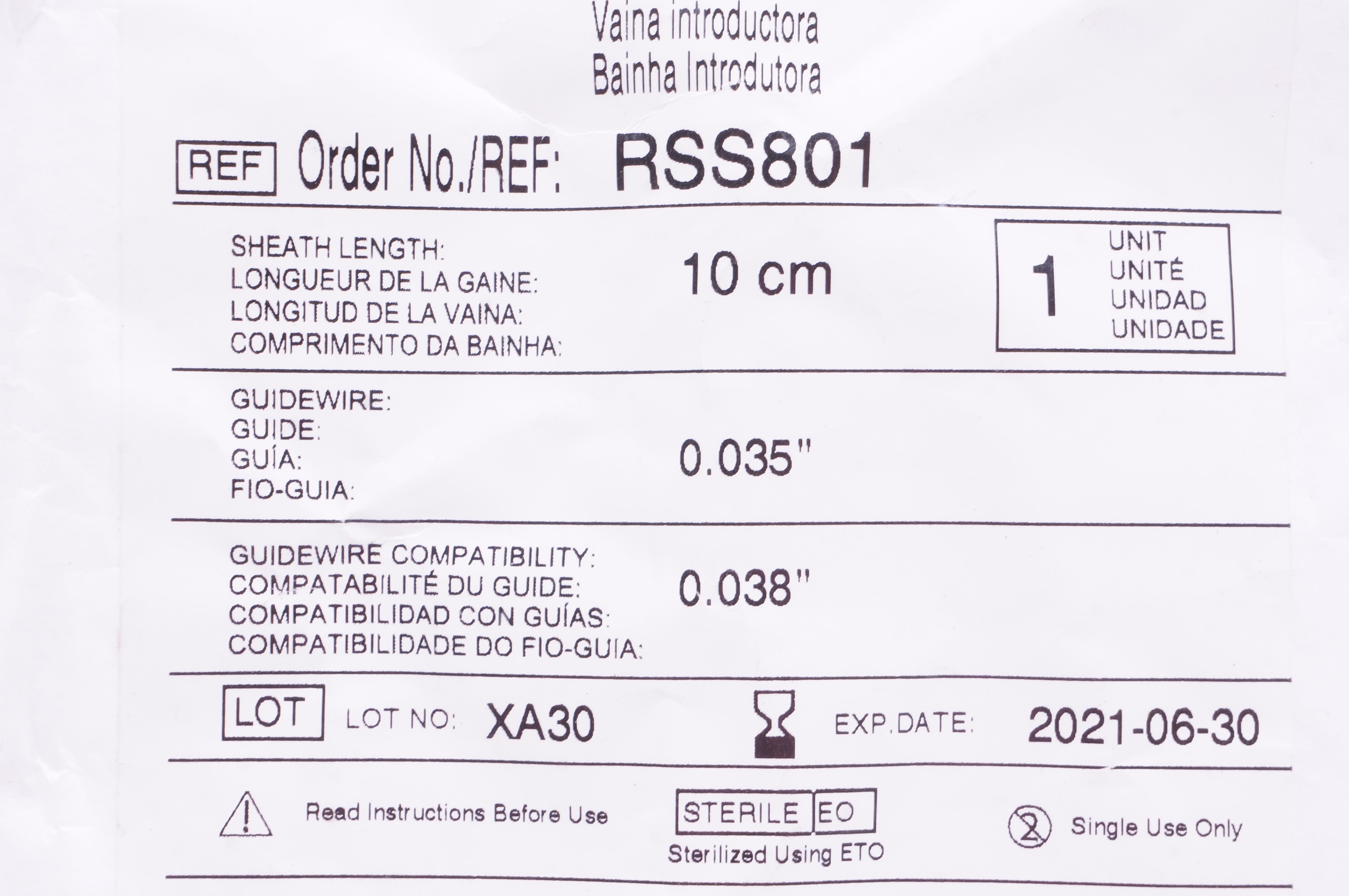 Terumo RSS801 Pinnacle Introducer Sheath 8Fr x 10cm x 0.035inch x 0.038inch (x)