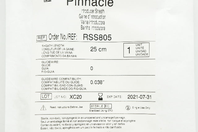 - Terumo RSS805 Pinnacle Introducer Sheath Fr. 8, 25 cm x 0.038 inch