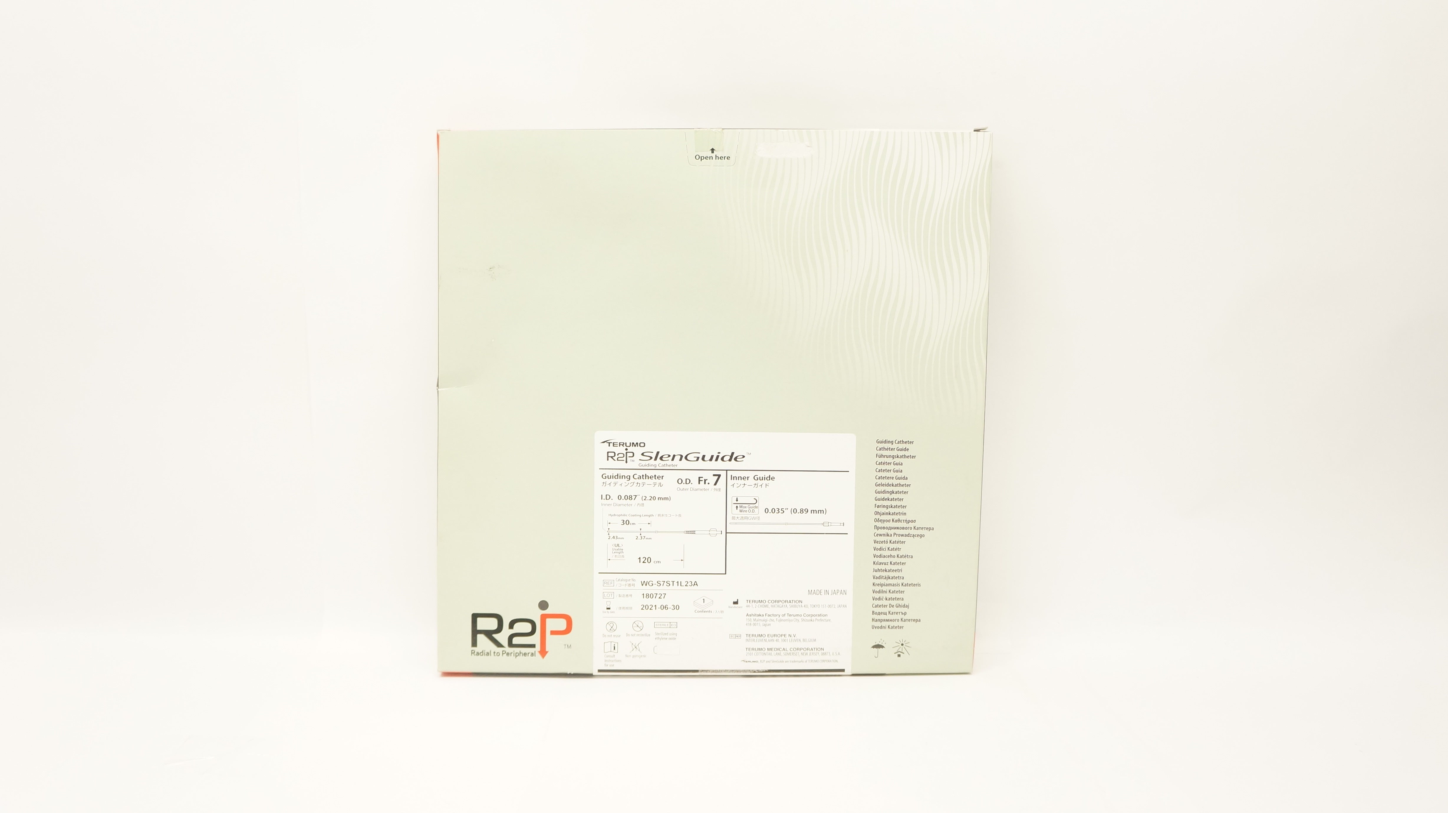 Terumo WG-S7ST1L23A R2P SlenGuide Guiding Catheter 7 Fr. x 0.087in.
