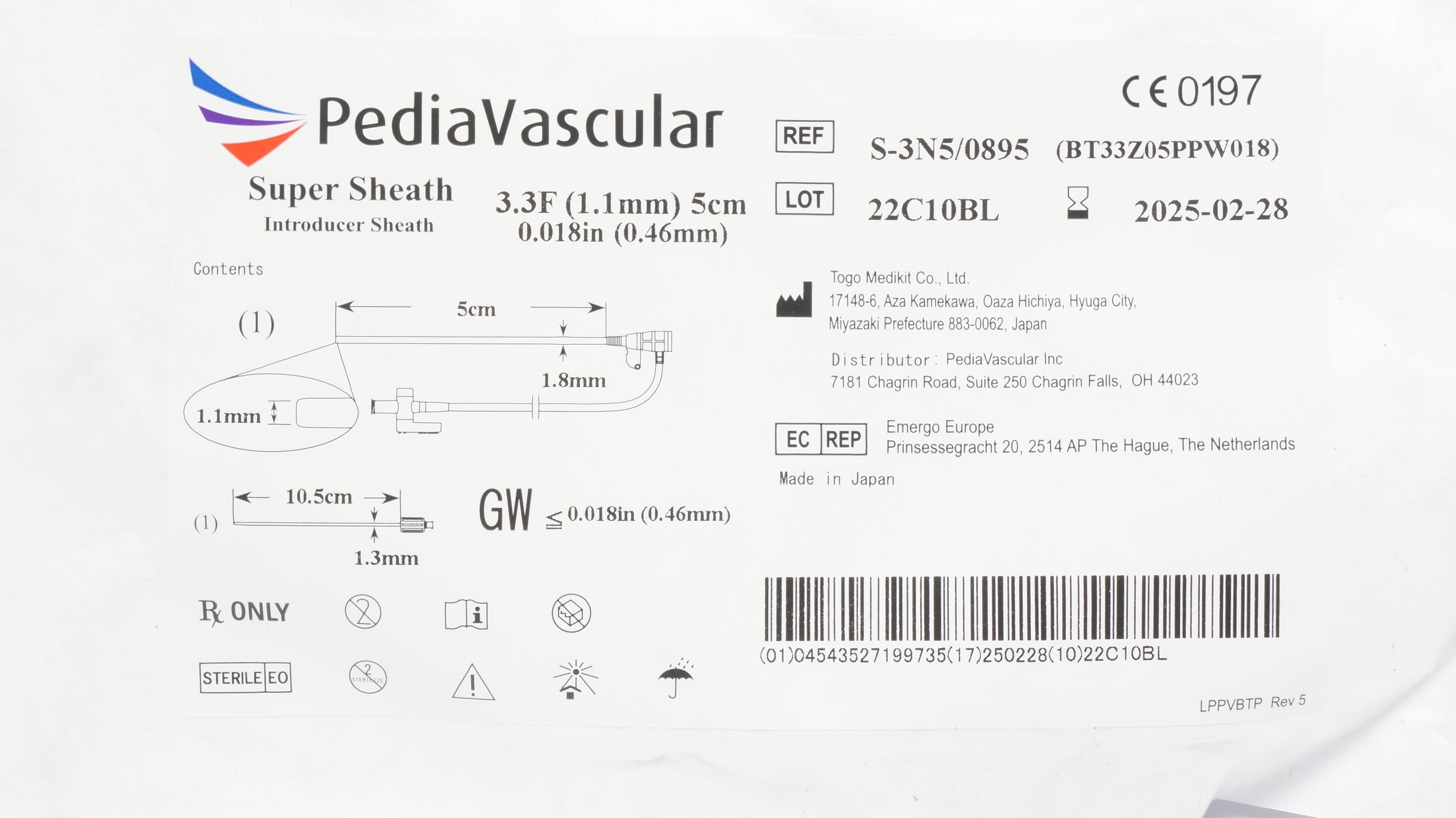 - Togo Medikit S-3N5/0895 Pedia Vascular, Super Sheath 3.3F x 5cm x 0.018inch (x)