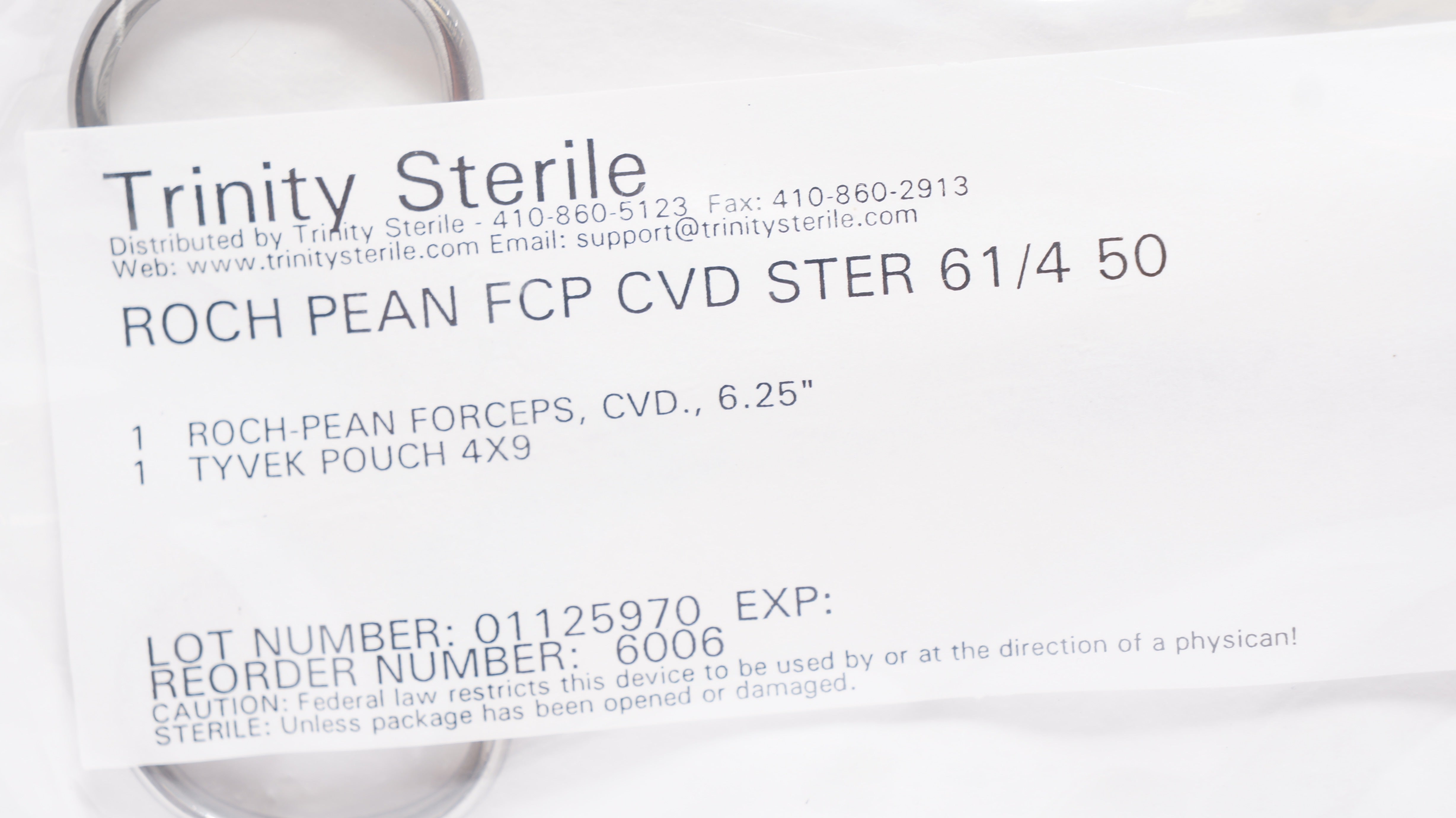Trinity Sterile 6006 Roch Pean Forceps CVD 6.25inch, Tyvek Pouch 4 x 9inch
