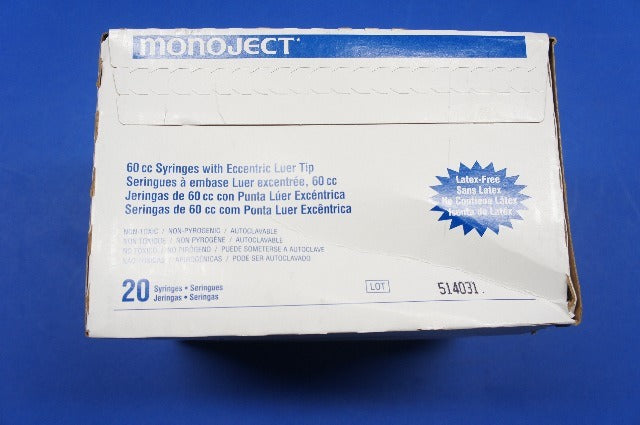 - Tyco 560182 Kendall MONOJECT 60cc Syringe with Eccentric Luer Tip ~ Box of 20