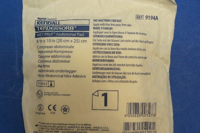 - Tyco 9194A Kendall Tendersorb Wet Pruf Abdominal Pad 8 (x)