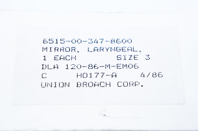 - UNION BROACH Mirror, Laryngeal, Size 3 6515-00-347-8600