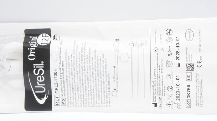 - UreSil GPL2-1230H Origin 12F Hydrophilic-Coated Locking Drainage Cath. W/Marks