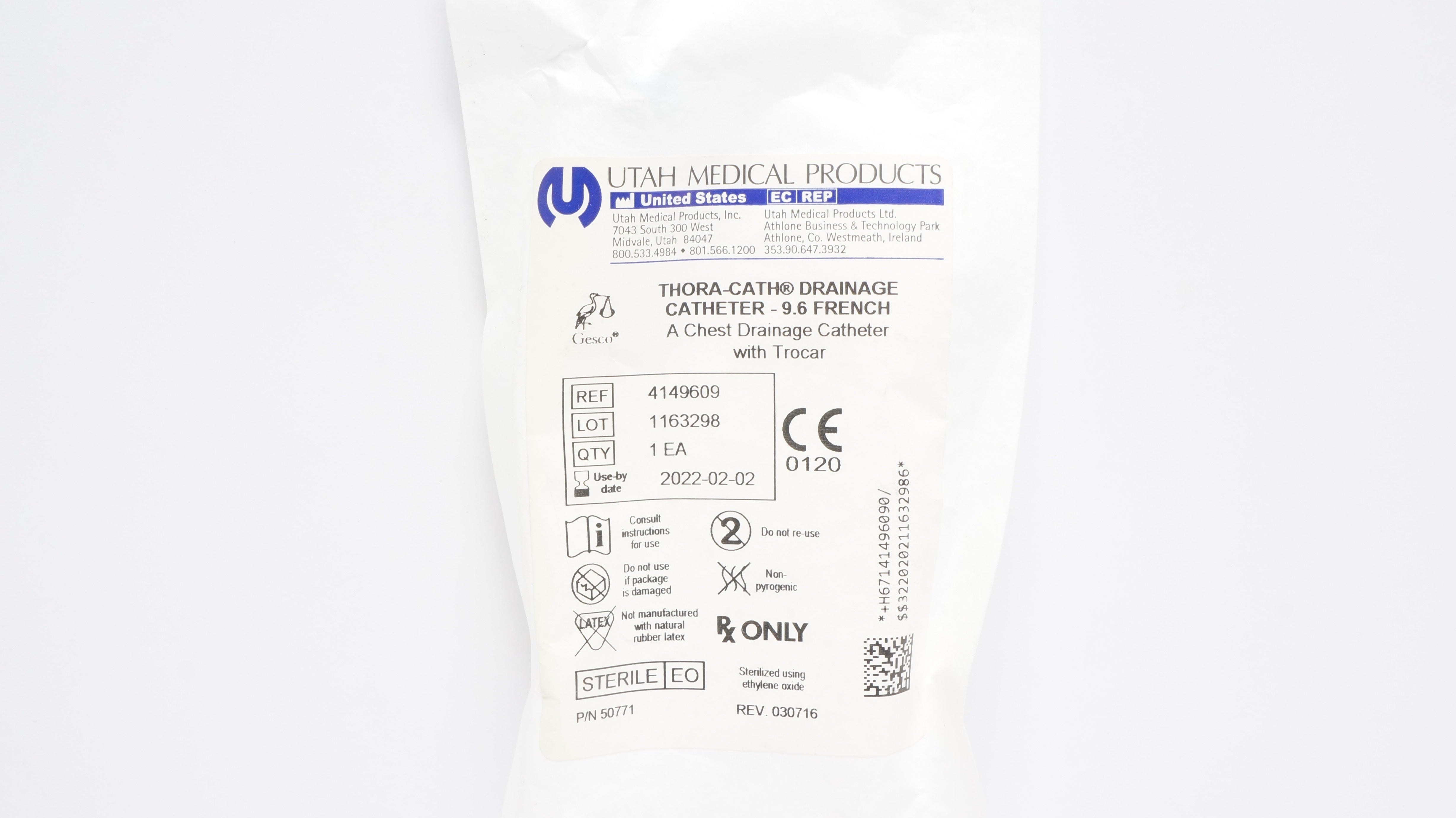 - Utah Medical 4149609 Thora-Cath Chest Drainage Cath. w/Trocar, 9.6 Fr (x)