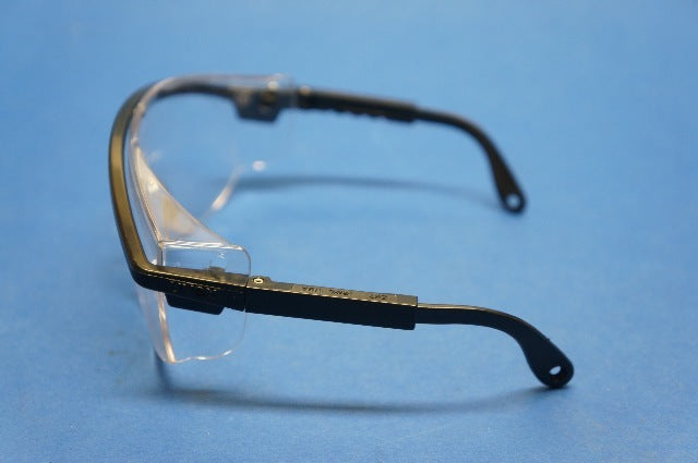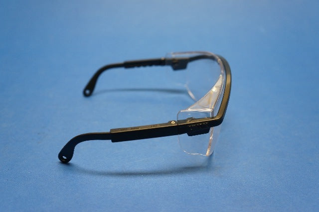 Special features: safety; optically correct; one-size-fits-all; polycarbonate protection on front, top, and sides; designed to protect from flying particles in workplace and to protect eyes from foreign matter including patient body fluids during medical procedures