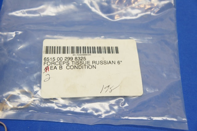 Iii part name assigned by controlling agency: forceps tissue russian 5.75-6.25" lg tweezer str & serrated crs