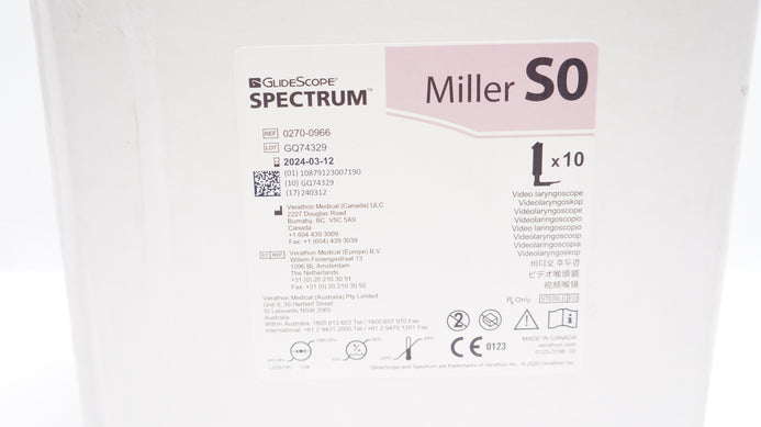 - Verathon 0270-0966 GlideScope Spectrum Video Laryngoscope Mill SO(x) - Box of 10