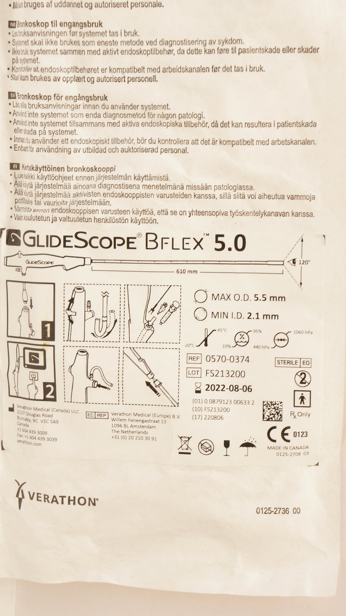 Verathon 0570-0374 GlideScope BFlex Bronchoscope 5.0 O.D. 5.5m x I.D. 2.1mm (x)