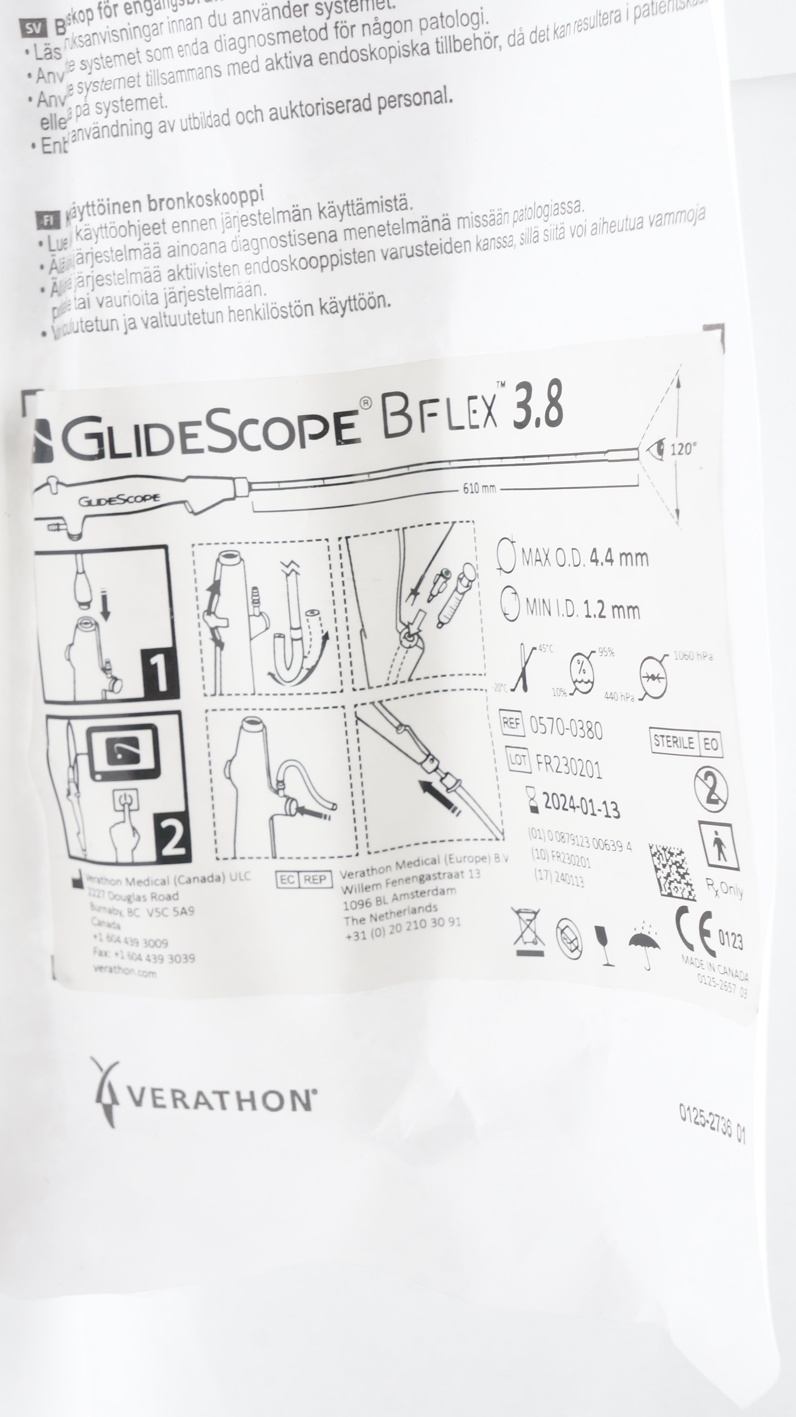 - Verathon 0570-0380 GlideScope Bflex 3.8 Bronchoscope 4.4mm ID x 1.2mm OD (x)