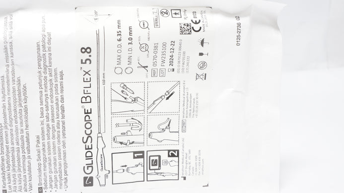 - Verathon 0570-0381 GlideScope BFlex 5.8 Bronchoscope 6.35mm ID x 3.0mm OD (x)