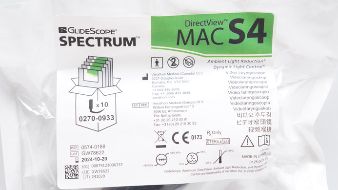 - Verathon 0574-0188 GlideScope Spectrum DirectView MAC S4 Video Laryngoscope