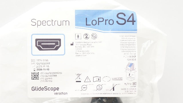 - Verathon 0574-0195 GlideScope Spectrum LoPro S4 Video Laryngoscope