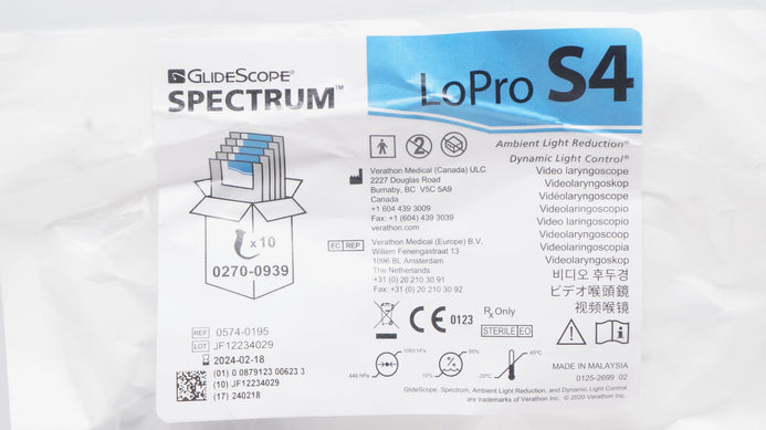 - Verathon 0574-0195 GlideScope Spectrum LoPro S4 Video Laryngoscope >40kg (x)