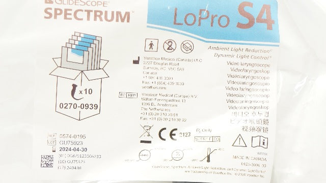 Verathon 0574-0195 GlideScope Spectrum LoPro Video Laryngoscope S4, >40kg (x)