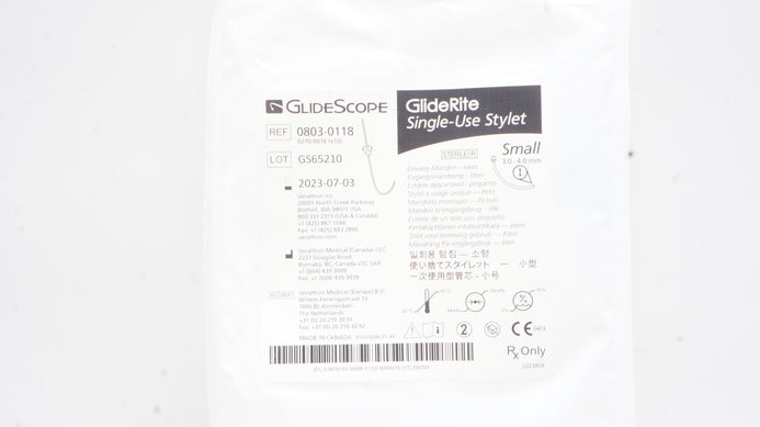 - Verathon 0803-0118 GlideScope GlideRite Single-Use Stylet Small 3.0 - 4.0mm (x)