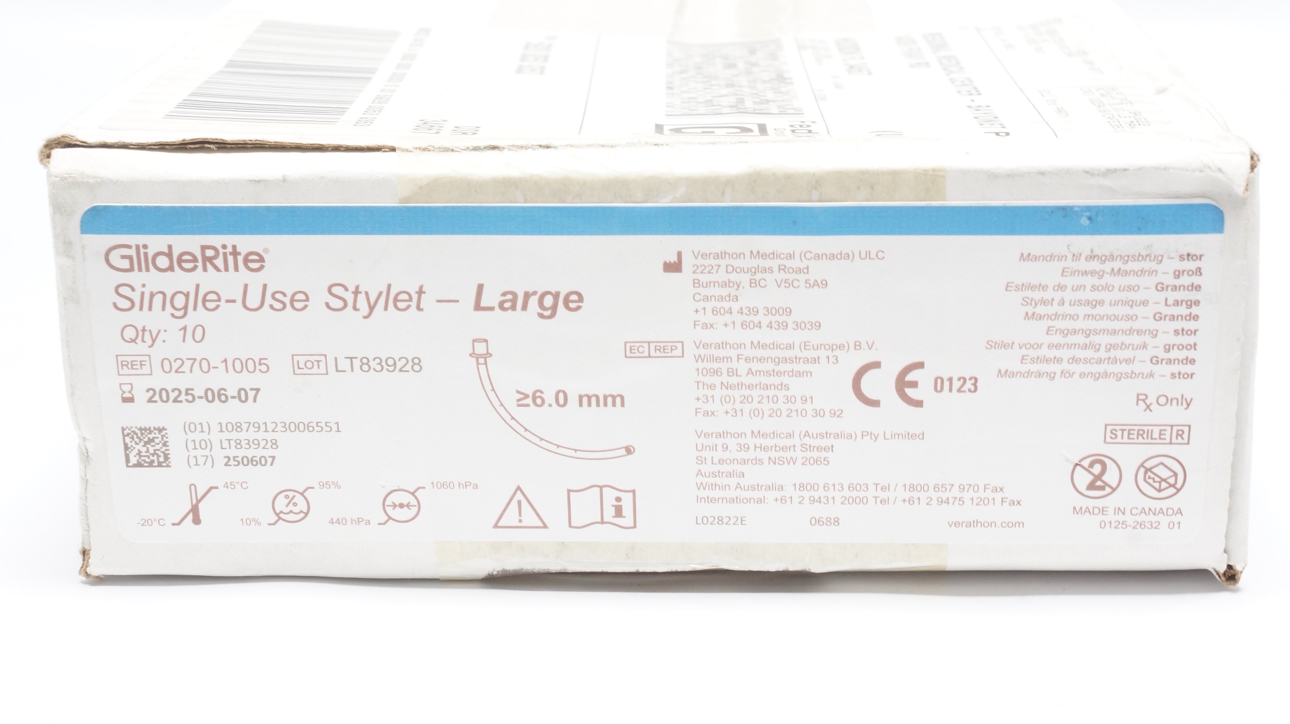 - Verathon Medical 0270-1005 GlideRite Single-Use Stylet-Large ≥ 6.0mm(x)-Box of 10
