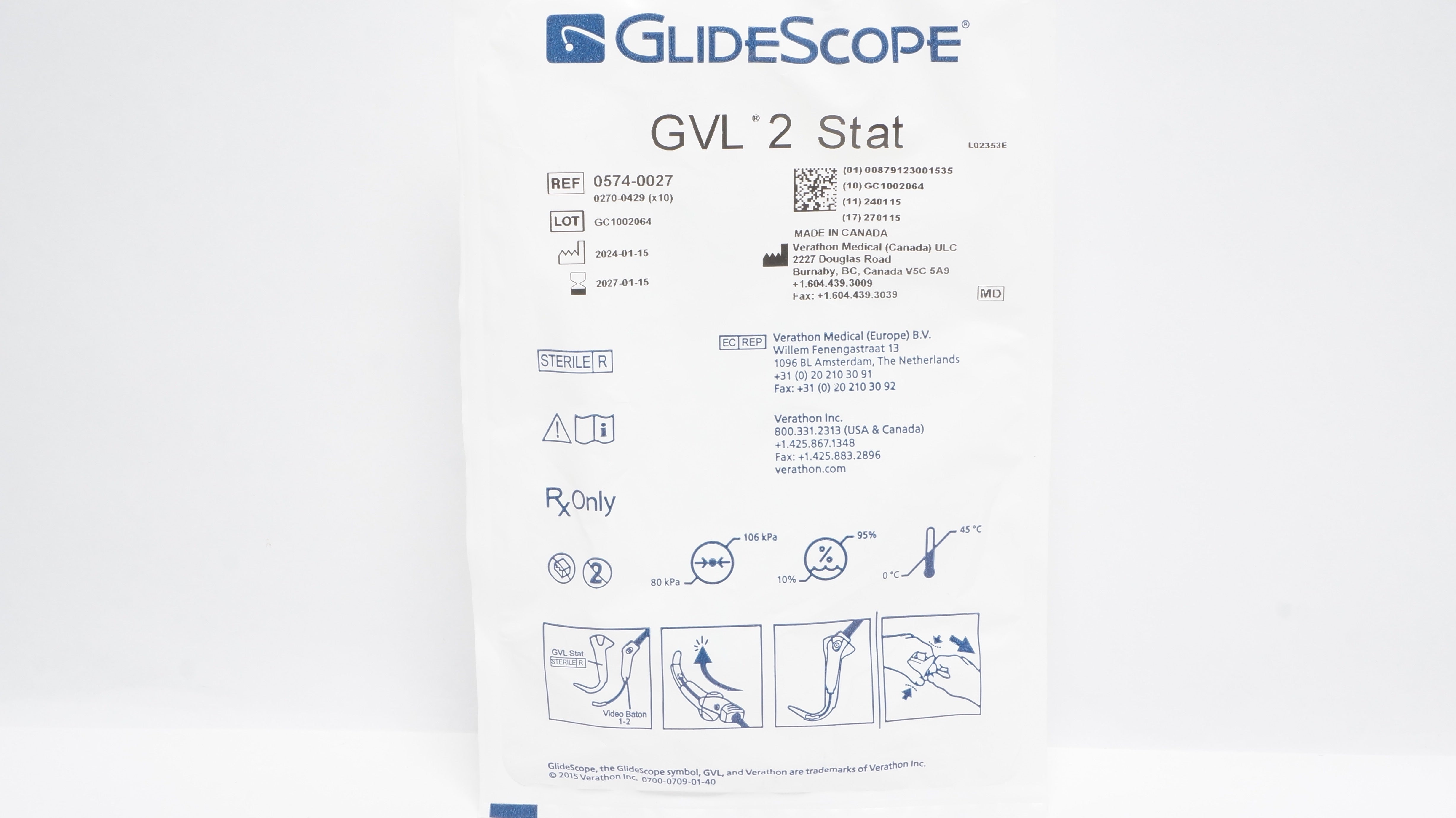 - Verathon Medical 0574-0027 GlideScope GVL 2 Stat Video Laryngoscope