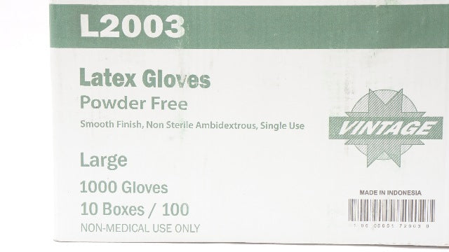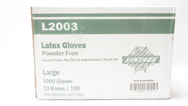 - Vintage L2003 Powder Free Latex Gloves Large - Box of 1000