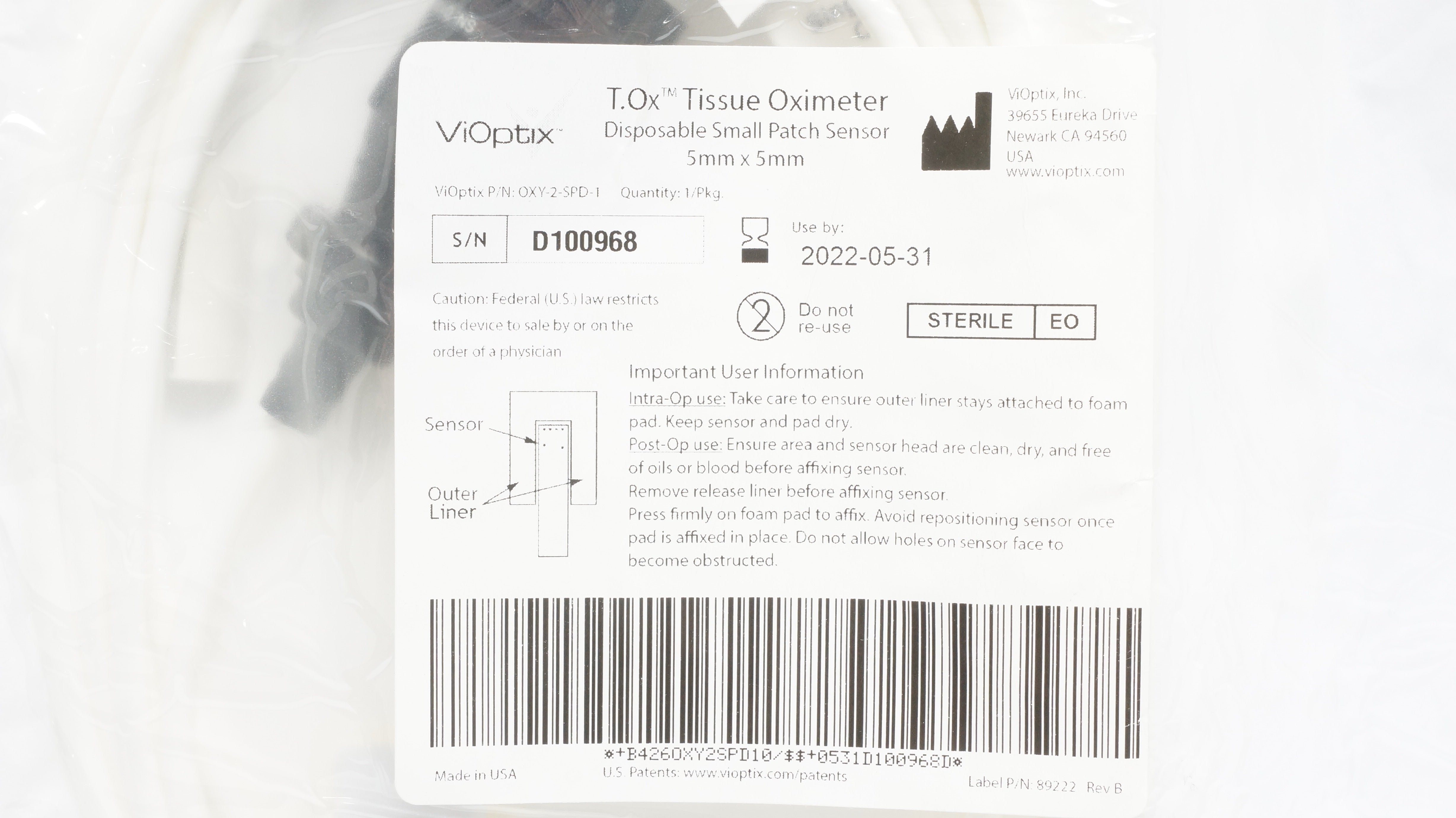 - ViOptix OXY-2-SPD-1 Tissue Oximeter Disposable Small Patch Sensor 5 x 5mm (x)