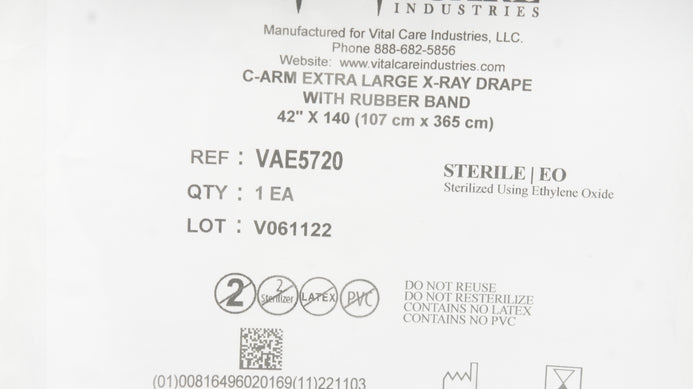 - Vital Care VAE5720 C-ARM Extra Large X-Ray Drape with Rubber Band 42inch x 140