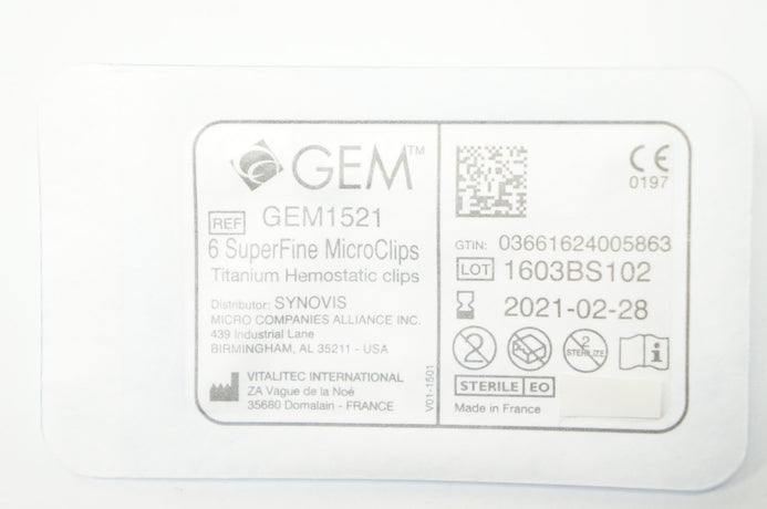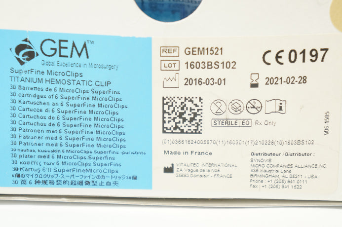 - Vitalitec GEM1521 GEM Titanium Hemostatic SuperFine MicroClips - Box of 30 (x)