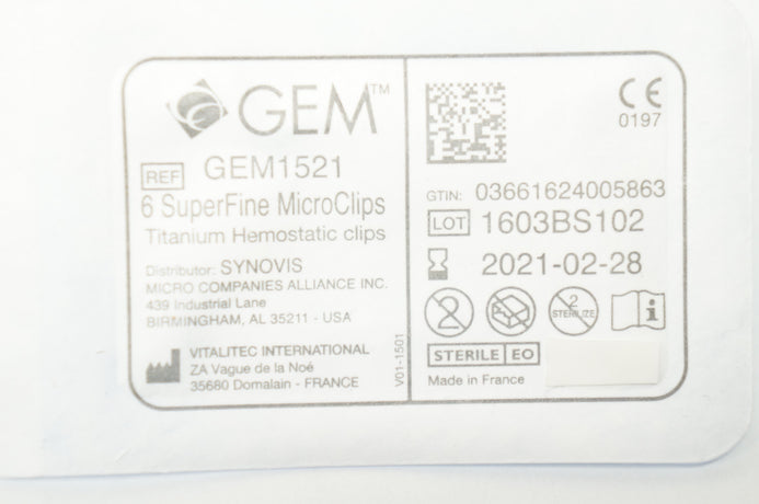 - Vitalitec GEM1521 GEM Titanium Hemostatic SuperFine MicroClips (x)