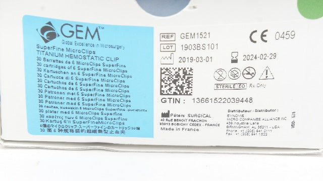 - Vitalitec GEM1521 GEM Titanium Hemostatic SuperFine MicroClips (x) - Box of 22