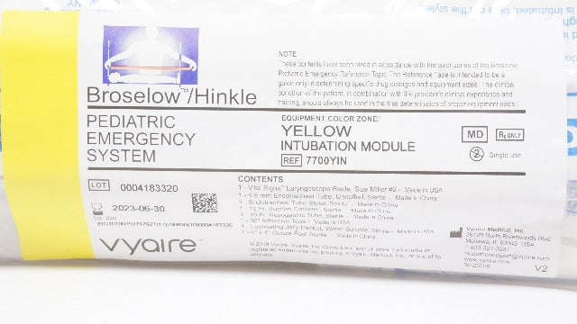 Viyare 7700YIN Broselow/Hinkle Pediatric Emergency System Yellow Intubation Module