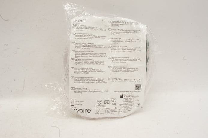 Vyaire 001211 Airlife Adult Oxygen Mask Vinyl, Mask w/7ft. Supply Tubing