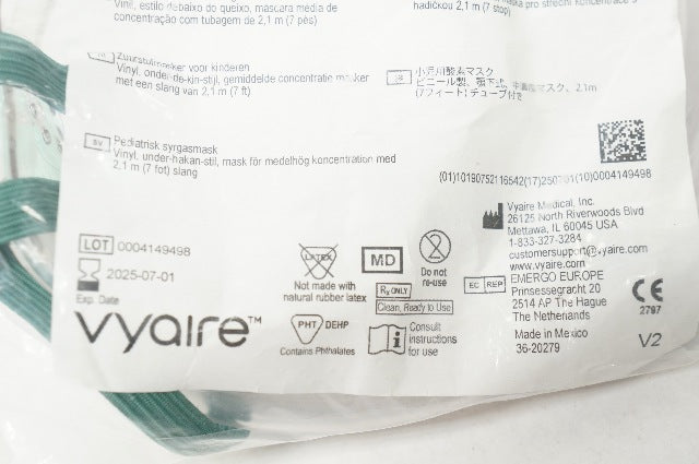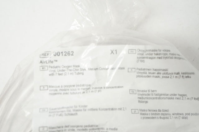 Vyaire 001262 AirLife Pediatric Oxygen Mask Vinyl, Under-The-Chin Style, Medium Concentration Mask with 7ft. Tubing