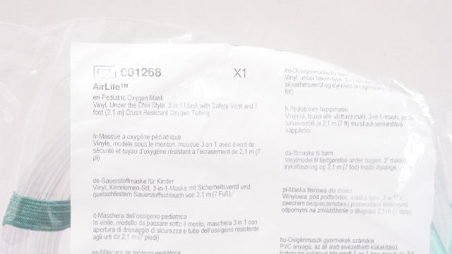 Vyaire 001268 AirLife Pediatric Oxygen Mask, Vinyl, w/7ft. Tubing