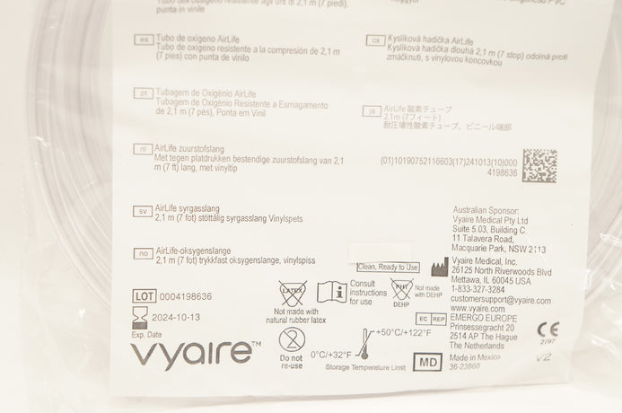 - Vyaire 001302 AirLife 7ft Crush Resistant Oxygen Tubing, Vinyl Tipped
