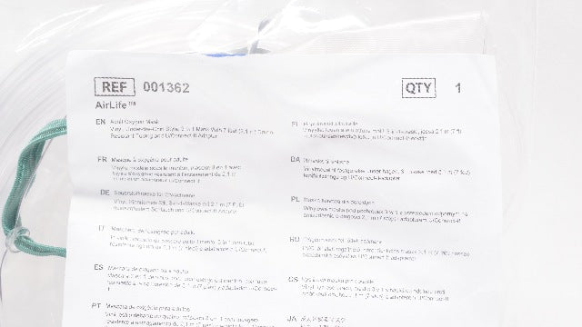 - Vyaire 001362 AirLife Adult Oxygen Mask Vinyl w/7ft. Tubing & U/Connect Adapter